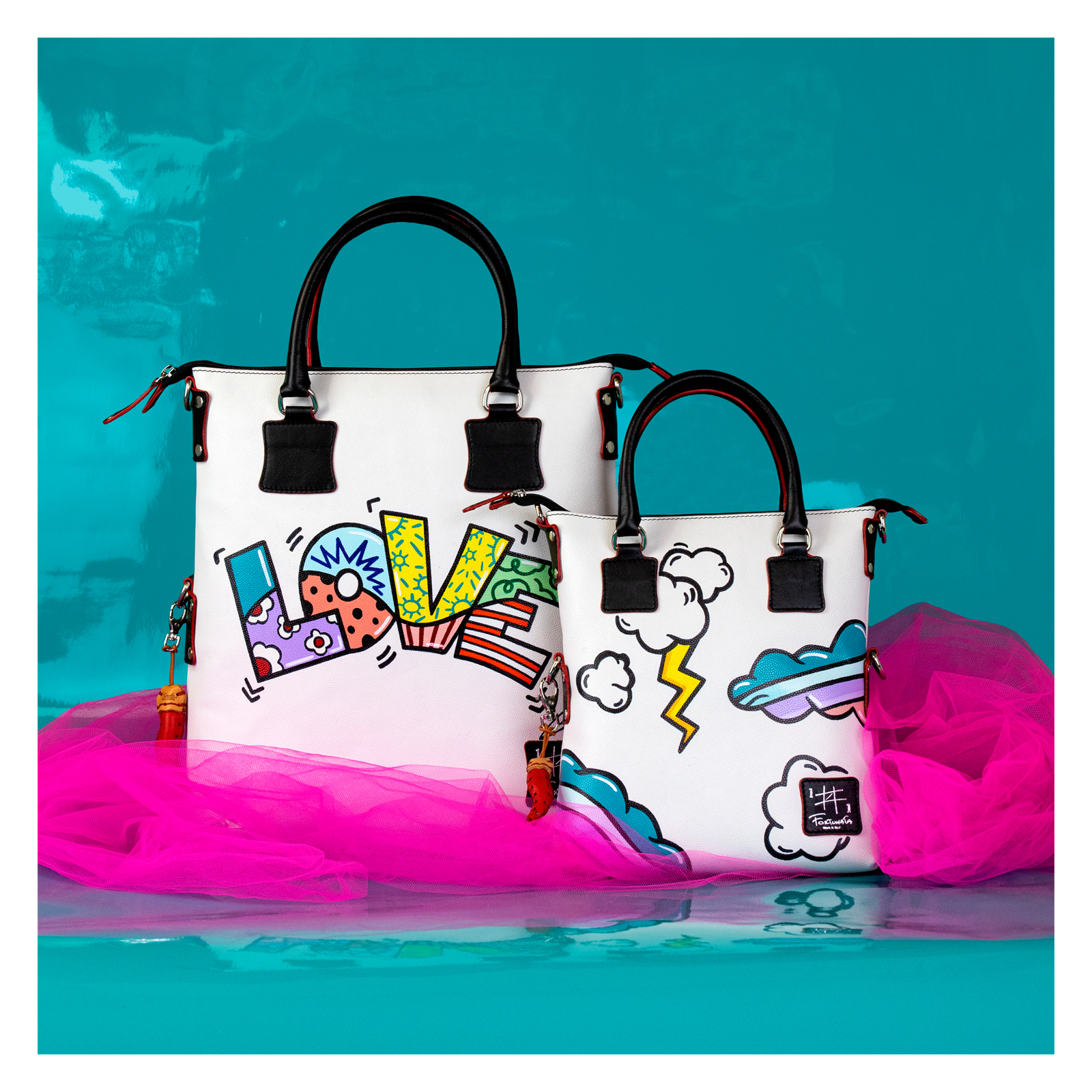 “Fortunata” è una borsa iconica della produzione Pietro Tucci e nel 2020 nasce la collezione DOODLE interamente dipinta a mano da Daniela Rapisarda.